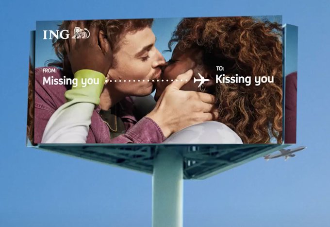 In each digital billboard/airbridge advertisement, the advertisements all feature 1 of 50 different unique journeys of “From” and “To”, like the ‘from’ and ‘to’ on travel tickets. Examples of these journeys are “From: Parent To: Partners”, “From: Long Distance To: Finally”, “From: Being the boss To: Being bossed around”, “From: The end of something To: The beginning of something”, etc. Each advertisement has the ING Bank logo of a lion and the ING “Do your thing” motto.
